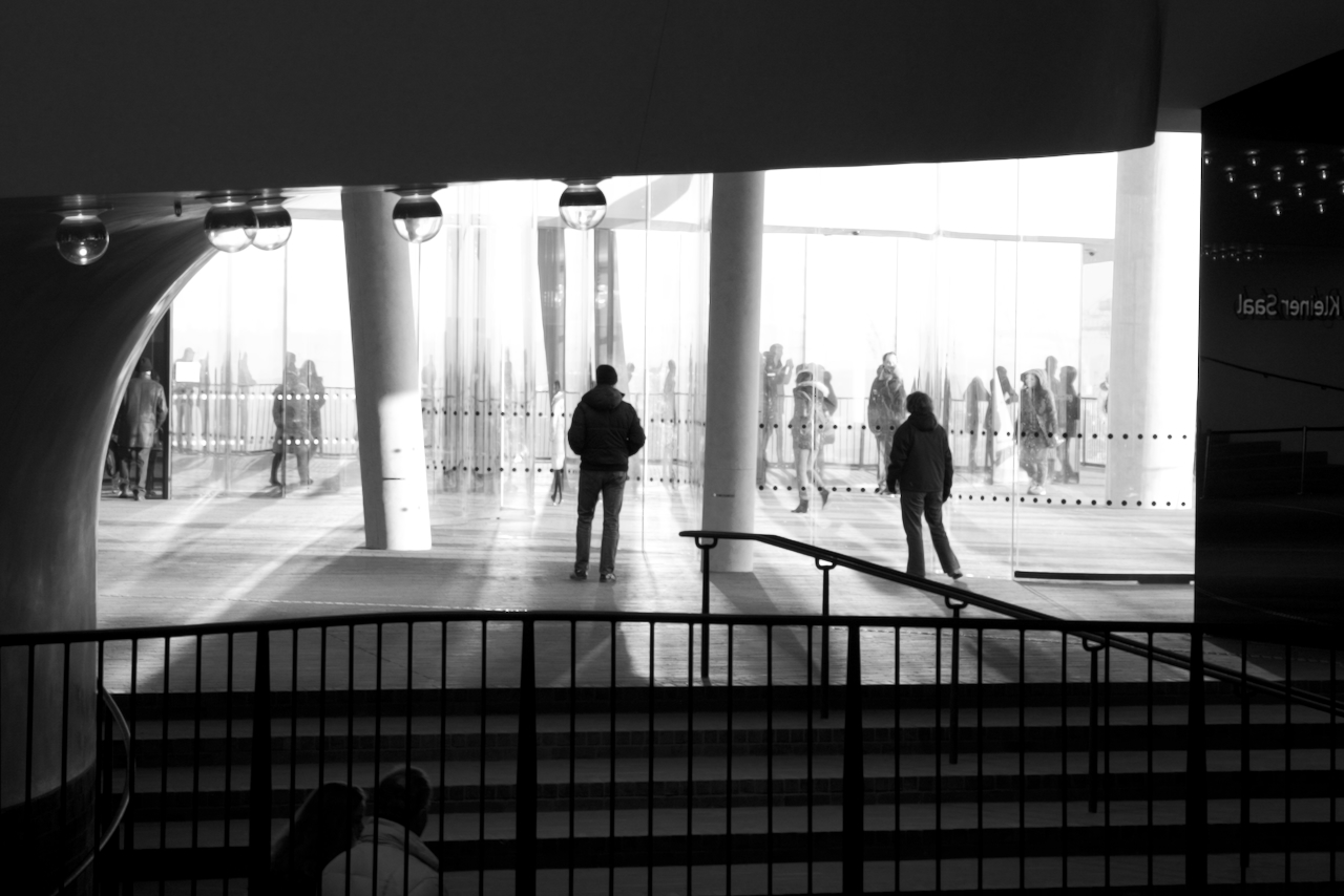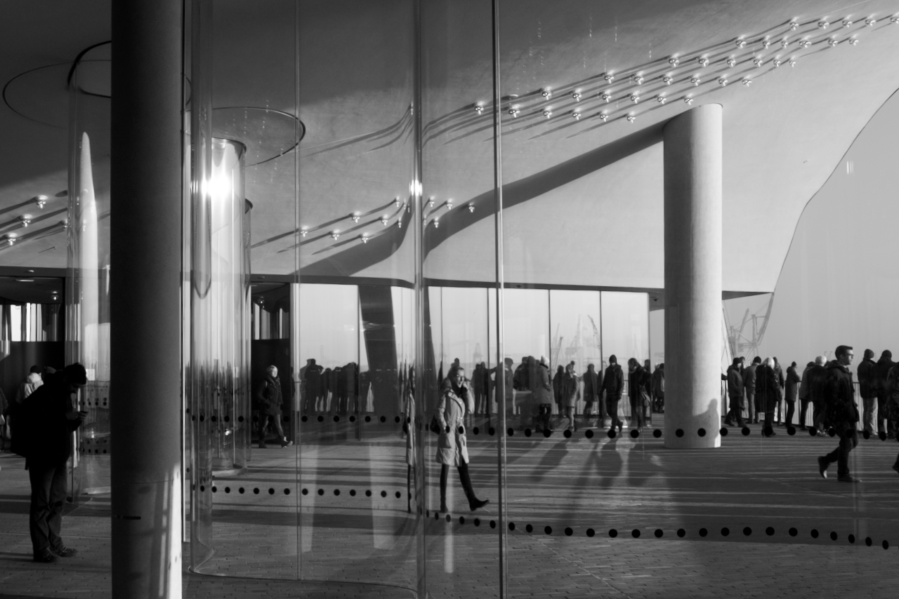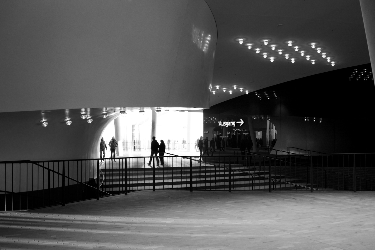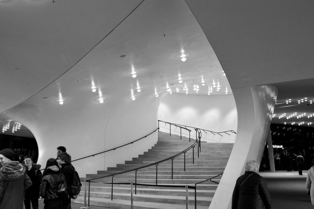 Die Plaza ist ein öffentlich zugänglicher Platz innerhalb der Elbphilharmonie in Hamburg. Die Stahl- und Glaskonstruktion der Elphi soll an geblähte Segel, Wasserwellen oder abtauende Eisberge erinnern. Sie ist auch Zugangsebene für das Foyer der Konzertsääle und zum Hotel. Die Fotostrecke entstand unter dem Eindruck in einer Höhle unter einem Gletscher zu sein.