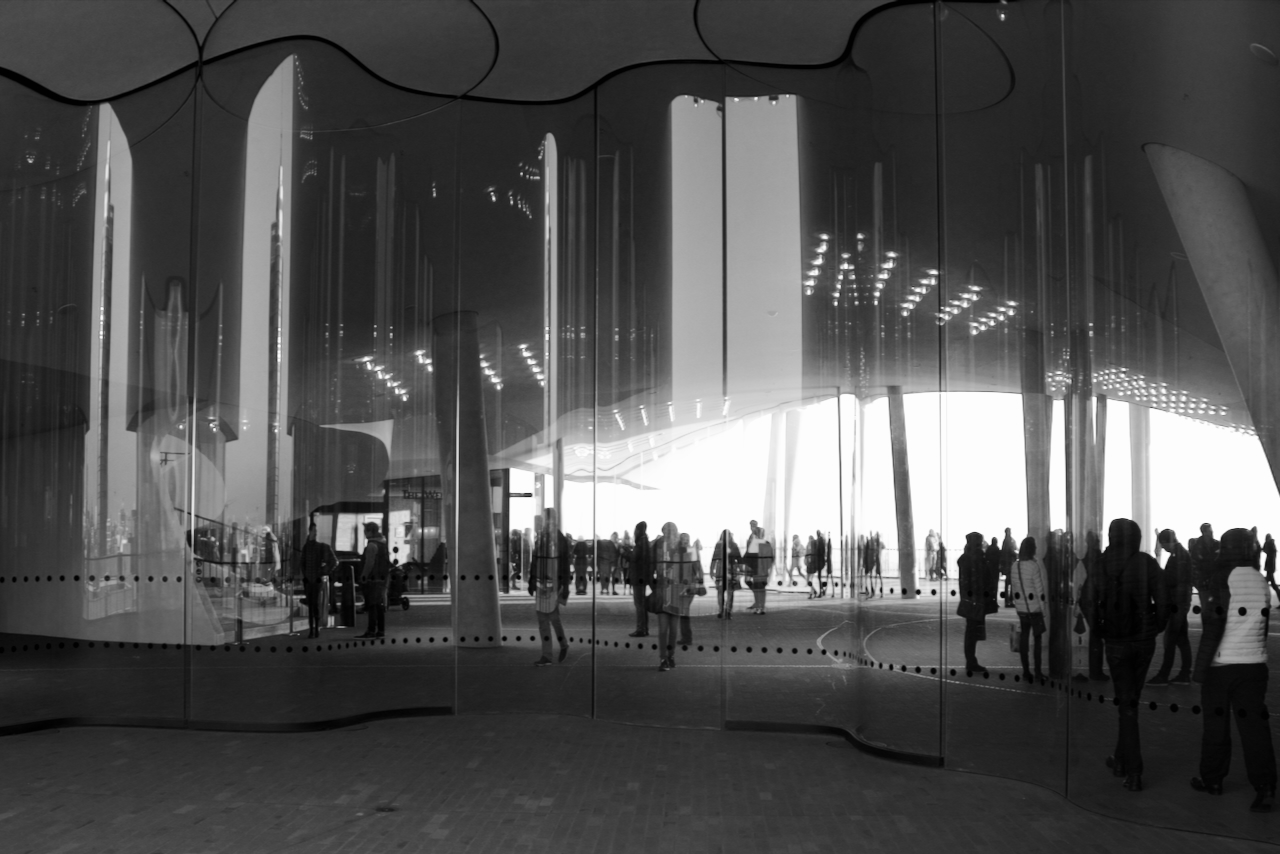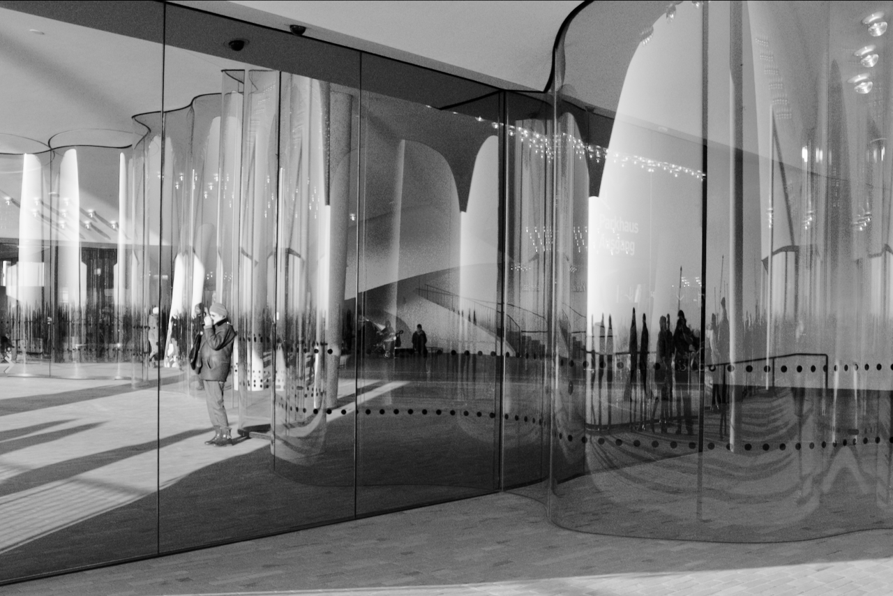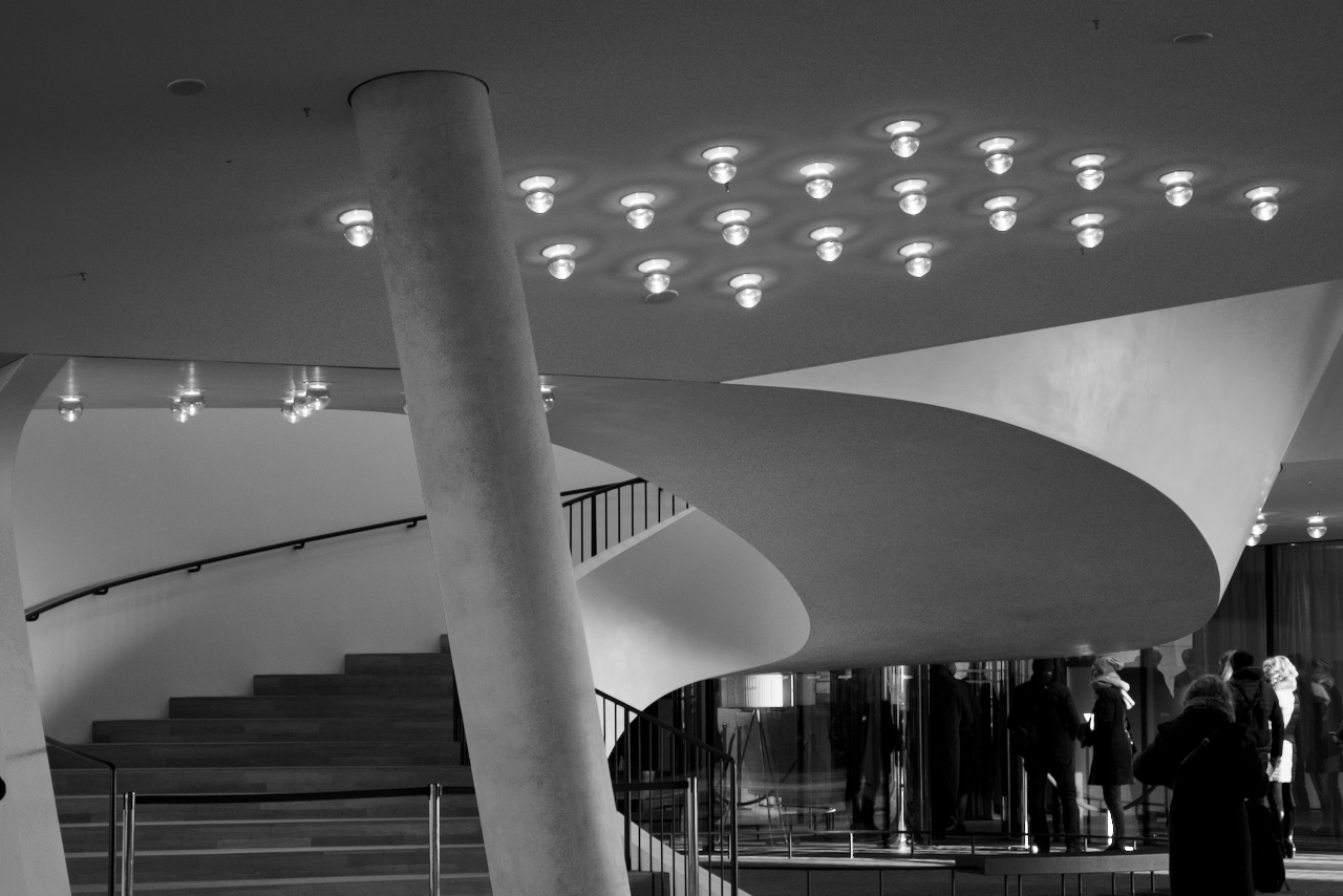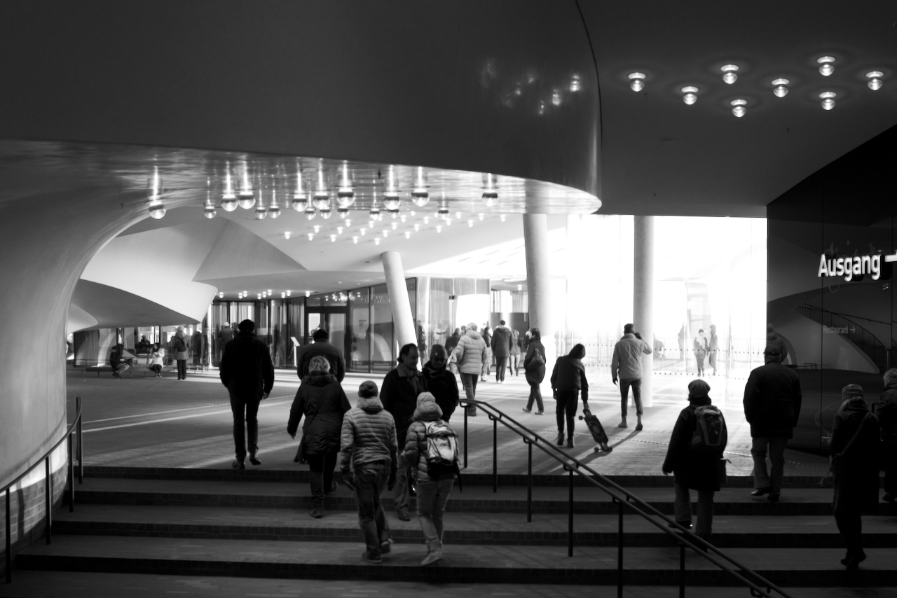 Die Plaza ist ein öffentlich zugänglicher Platz innerhalb der Elbphilharmonie in Hamburg. Die Stahl- und Glaskonstruktion der Elphi soll an geblähte Segel, Wasserwellen oder abtauende Eisberge erinnern. Sie ist auch Zugangsebene für das Foyer der Konzertsääle und zum Hotel. Die Fotostrecke entstand unter dem Eindruck in einer Höhle unter einem Gletscher zu sein.